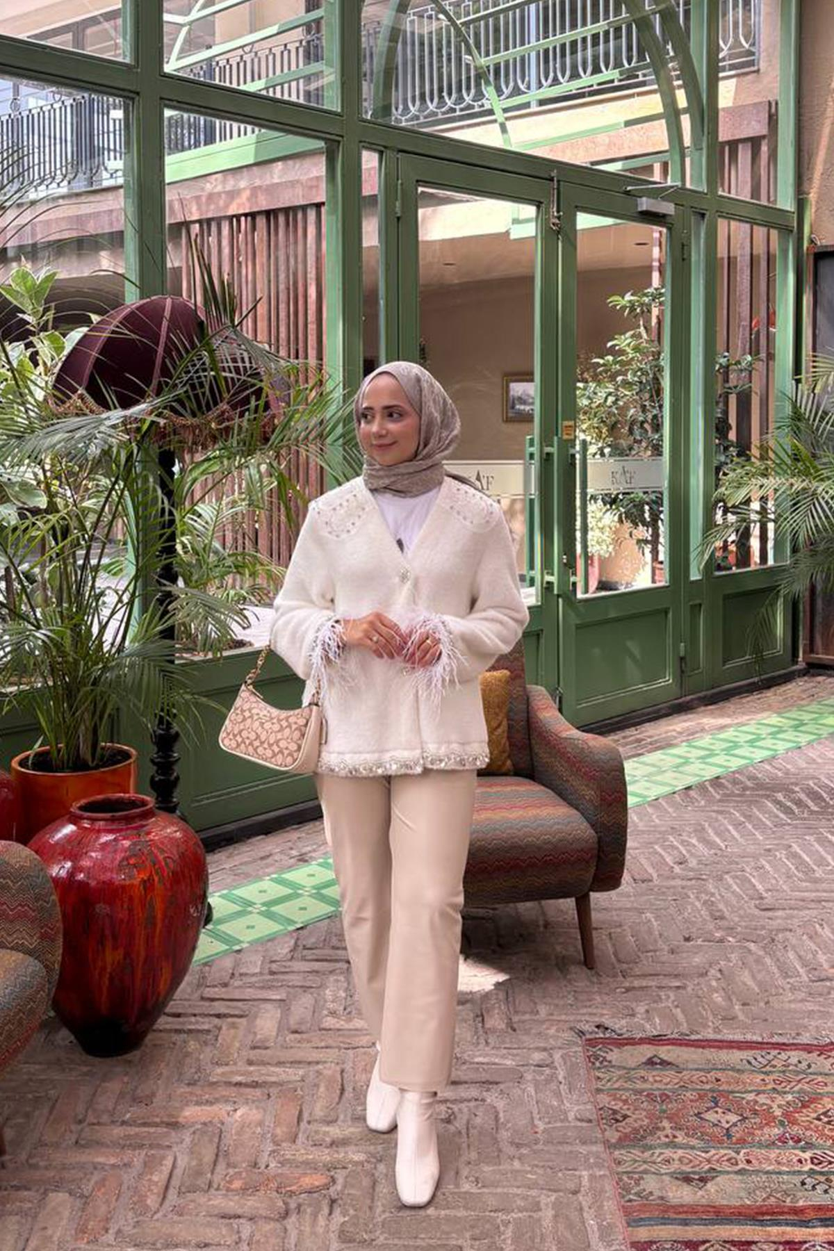 TAŞ DETAYLI KOLU TÜYLÜ DİVA CEKET
